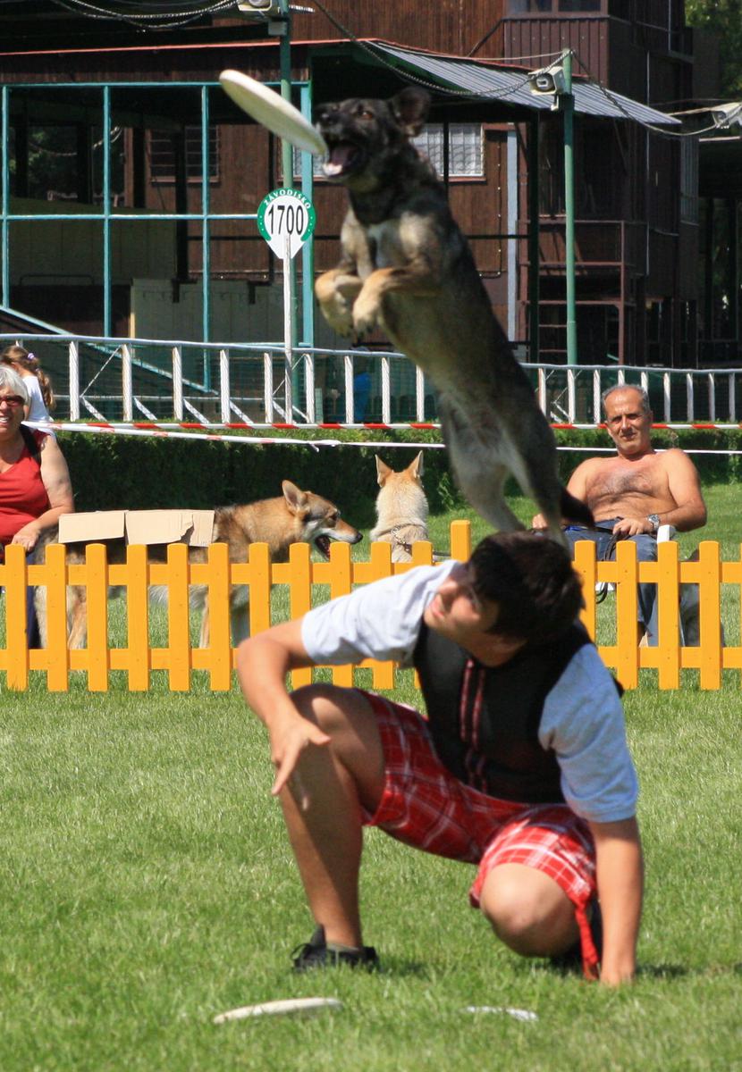 Po akcii v Šali sme sa na druhý deň vďaka Saši zúčastnili aj Medzinárodnej výstavy psov v Bratislave. Trafili sme tam na prvý krát a mali sme dokonca VIP parkovisko :D Na výstave bolo plno úžasných psov. My sme sa rovno presunuli ku kruhu, v ktorom prebiehali ukážky agility(ak sa nemýlim). Postupne sa spísal zoznam vystupujúcich, pozbierali sa CDčka a mohlo sa začať. Začali Dogdanceri, ktorý mali naozaj parádne tance a potom sa to už striedalo - raz Dogfrisbee a raz Dogdancing. Aj my sme sa dostali na rad a hoci bolo fakt neskutočné horko, tak Beginka zvládla 3,5 skoro stále v šprinte a naozaj pekne chytala aj disky a aj s trikmi nebol žiaden problém. Bola to síce čistá improvizácia, ale ohlasy boli opäť celkom pozitívne, čiže sme spokojný, že sme sa na takejto veľkej akcii mohli predviesť.